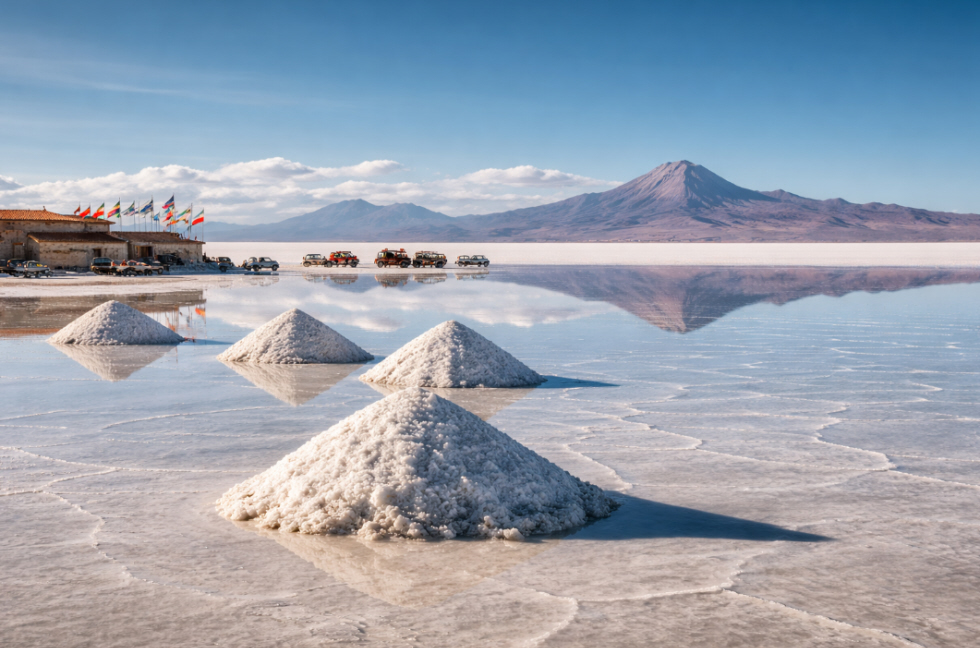 In southwestern Bolivia, where the Andean Altiplano stretches into a vast and almost unreal expanse, lies the Salar de Uyuni, a place that challenges human perception. The horizon dissolves into an endless white surface where sky and earth seem to merge, and silence becomes part of the experience itself. Traveling across