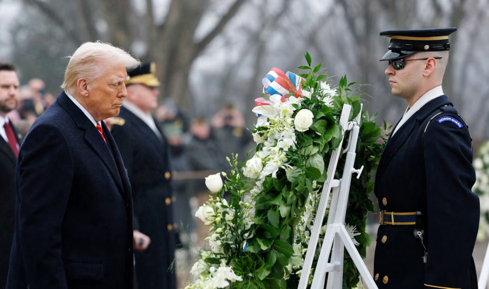 “That was a hard four years we went through — who would let that happen?” he said. “People pouring through our borders, unchecked, people doing things that are indescribable.” But Trump, apparently noticing his surroundings, added that such things were “not for today to discuss” and continued his remarks, eventually going into a recitation of the names and deeds of a few of the Americans buried there at Arlington, as well as soldiers and Marines and sailors who died in Vietnam, Afghanistan and Syria.